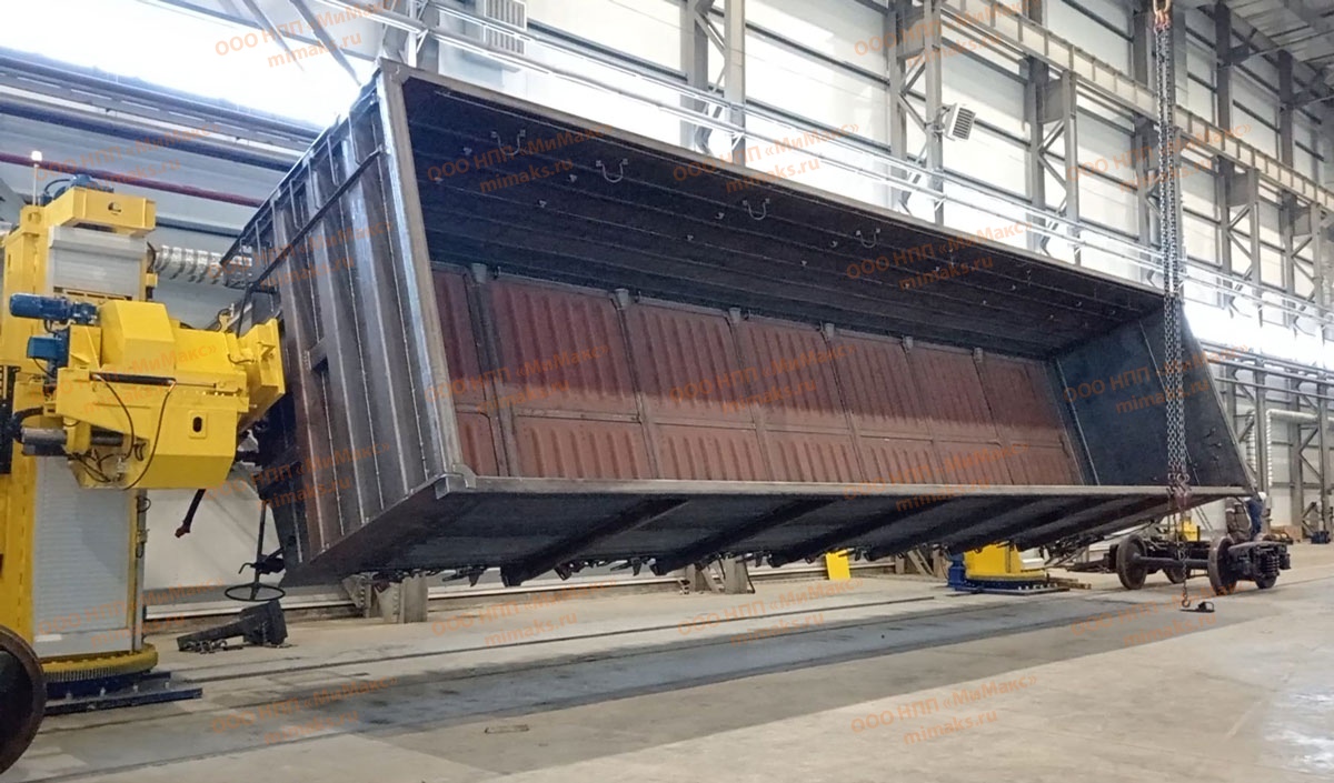 Кантовочное устройство предназначено для комплексной механизации работ на позициях сварки кузовов люковых полувагонов. Выполняет удержание, вертикальное перемещение (подъем/опускание) и кантовку на угол ±90° заготовок кузовов, предварительно собранных на прихваточных швах. Позволяет интегрировать в непрерывную технологическую линию производства или ремонта вагонной техники.
